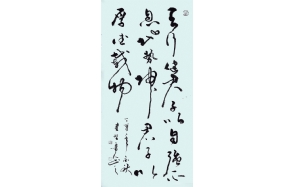 其书法作品用笔安详从容、法度森严、笔意丰富、神完势足、风格多变,浓缩古风今意、气象万千。读其书法,劲健秀逸与奔放淋漓兼备,如观清纯心灵,给人一种超凡脱俗之感,在轻松自然的氛围中给人以美的享受。