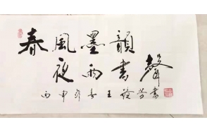2018年6月29日,在四川宜宾李庄参加书画名家共庆改革开放40周年暨第二届“古建与书画之美”优秀作品展,代表书画界作了发言,期间在现场以及企业界作了书艺互动交流,突显出书艺实力,作品劲逸、健美、潇洒、飞动。