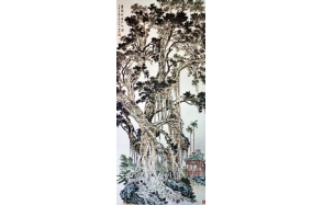 杨维凡画风大气磅礴、章法奇峭、法承前人、中西结合,并将“杨家山水”的榕树、大海、岩石等独特山水画法传承下去并发扬光大,为世人称之为新一代“中国画榕树王”、大海“中国画大海一绝”。