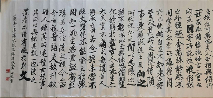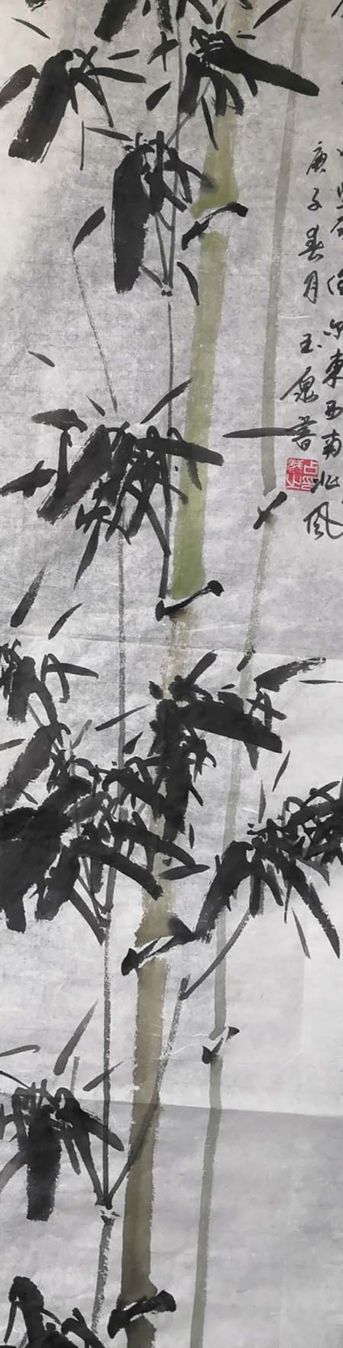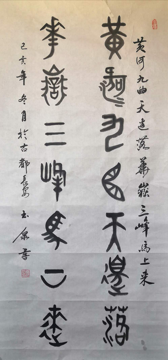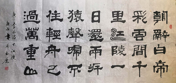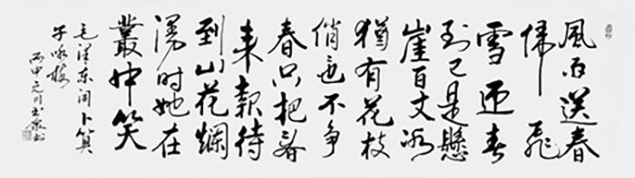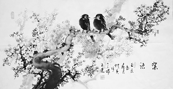 经过多年的学习和提升,他的书法诸体兼善,形体优美流畅、筋骨雄壮,造型新颖,尤其真、草、隶、行、篆、榜书等气势磅礴,给人美的享受;花鸟画独具风格,色彩淡艳鲜明强烈,具有清新隽秀、雅素共赏之风格,尤其梅、兰、竹、菊、虾、牡丹、荷花等别具特色。